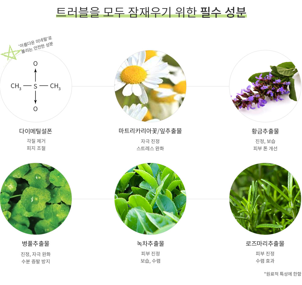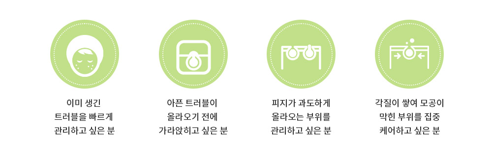 트러블을 유도하는 물질의 생산을 억제하고 p.acne의 증식을 억제하는 기전으로 모공내 노폐물도 잘 제거되는 느낌입니다.