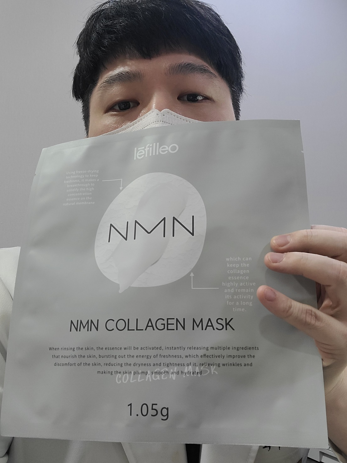 “레필레오 바넷사 맛티아 NMN 콜라겐 마스크”는 동결건조를 이용해 고농도 콜라겐 에센스를 마스크 시트 위에 함침한 제품으로, 두 가지 사용 방법을 제안받았습니다.