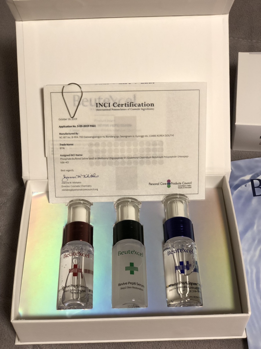 BTXL라는 물질이 상당히 흥미로웠음. 보톡스를 이용한 시술을 활발히 하는 입장에서, 바르는 보툴리눔 톡신에서 유래된 성분이 화장품에 들어있는 것에 대한 효능 효과가 궁금했음. 결론부터 말씀드리면 물론 주사로 직접 톡신을 주입하는 것보다는 당연히 체감되는 효과는 미미하지만 안티링클패치의 경우는 즉각적인 효과가 있었음. 미세 니들형식으로 설계되어 시간이 지날수록 유효성분이 흡수되도록 되어있고 맨처음에는 자극감이 우려되었으나 사용 후 자극감은 남지 않고 미세 잔주름 교정에 효과가 있음.