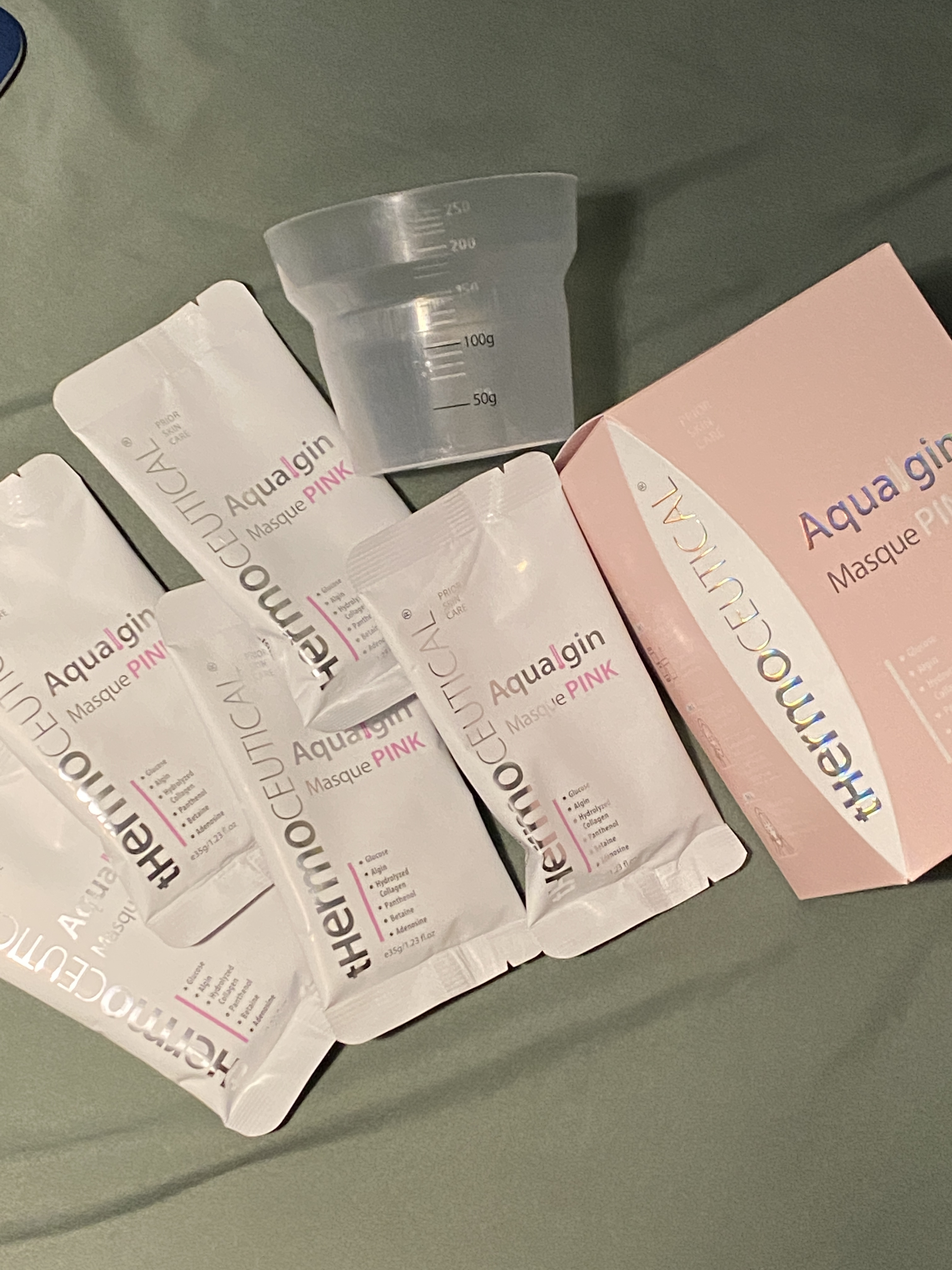 apri**** 겔마스크팩은 정말 생소해요박스 안에는 마스크 5포, 전용 스페츌라, 전용 계량컵이 담겨있어